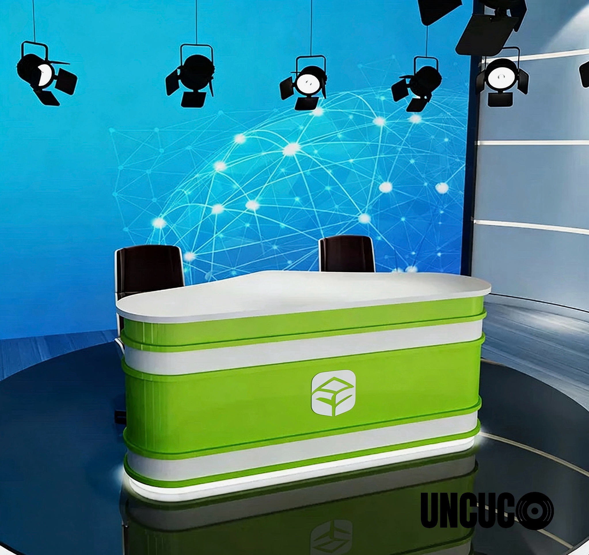Whether you need a modern studio desk design for a tech-focused news set or a bold color-blocked table for an entertainment show, UNCUCO has options to elevate your visual appeal: