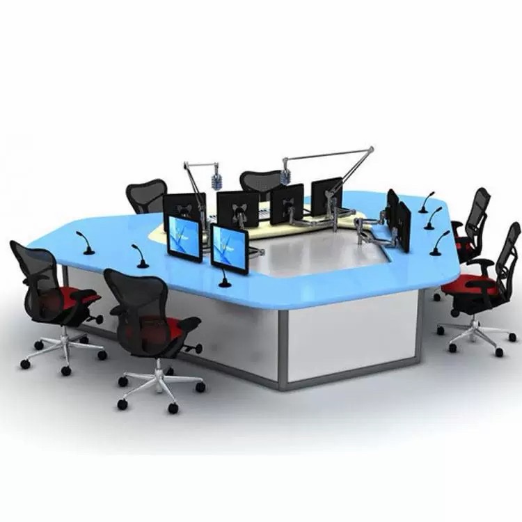 Our signature curved layout is optimized for multi-host and producer setups, supporting 4–8 team members simultaneously. Each position features dedicated mounting points for microphones, monitors, and broadcast accessories, ensuring every host, producer, and engineer has unobstructed visibility and access to critical equipment. The contoured shape fosters natural communication, making it ideal for live radio shows, panel podcasts, and interactive broadcasts.