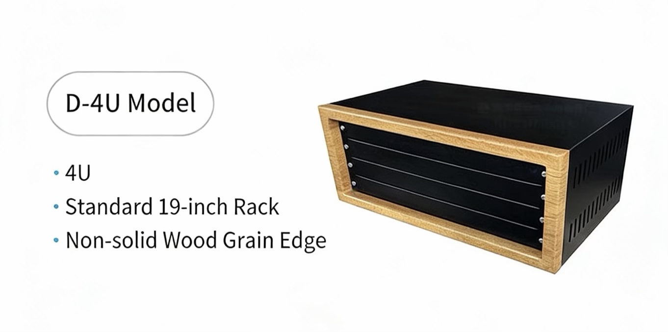 The UNCUCO D-4U is a professional-grade 19-inch rack unit specially designed for home studio setups. With a 4U height, wood grain frame design and efficient heat dissipation structure, it provides a professional equipment storage solution for audio creators. It not only ensures full compatibility with industry-standard audio equipment but also features a warm wood texture that blends perfectly with home studio environments. It is an ideal choice for small recording studios, podcast studios and desktop audio enthusiasts.