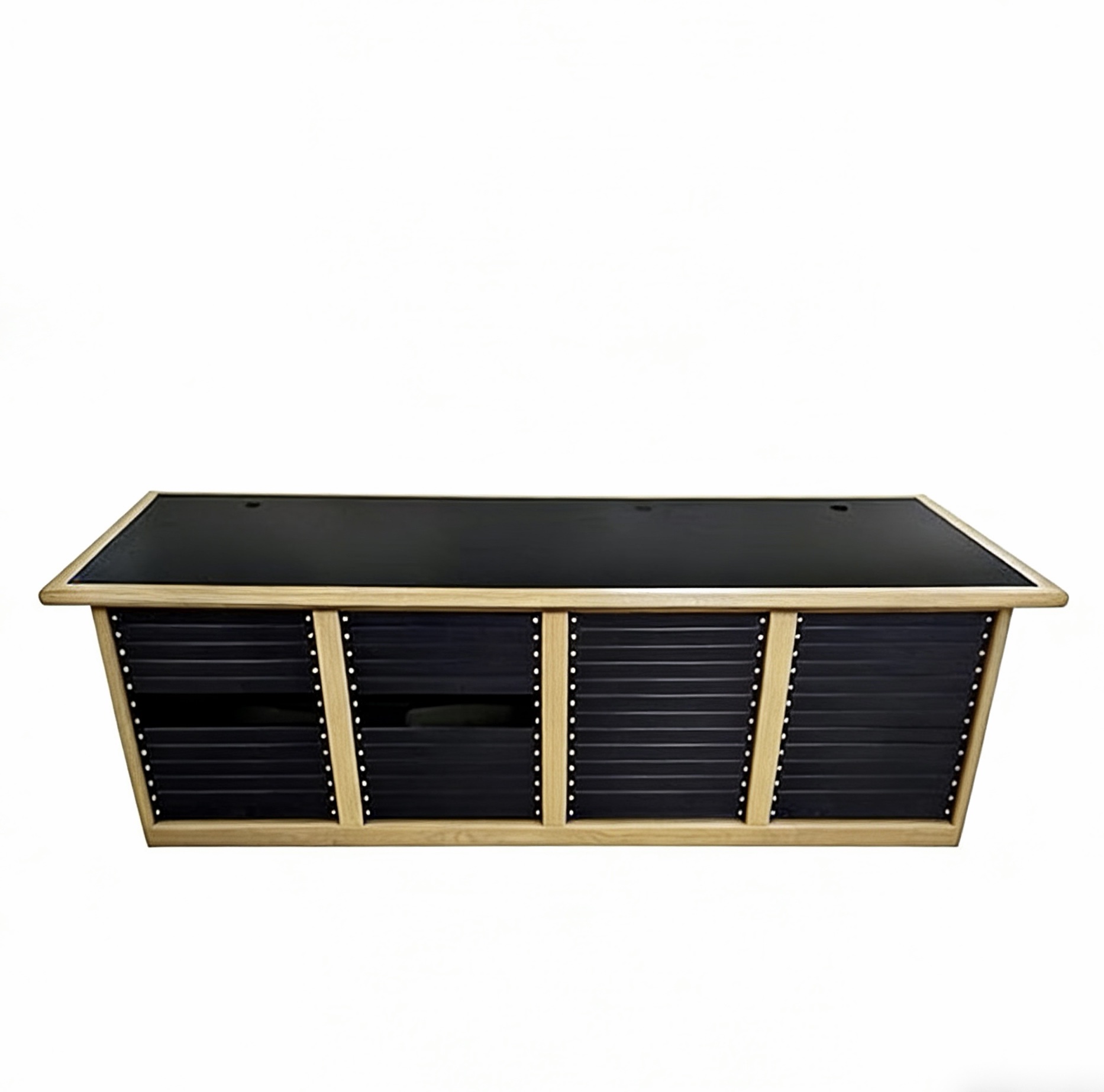 Supports broadcast mixing consoles, intercom systems, wireless microphone receivers, and video routing equipment. The stable 4-cabinet structure ensures reliable performance in high-traffic production environments where equipment reliability is critical.