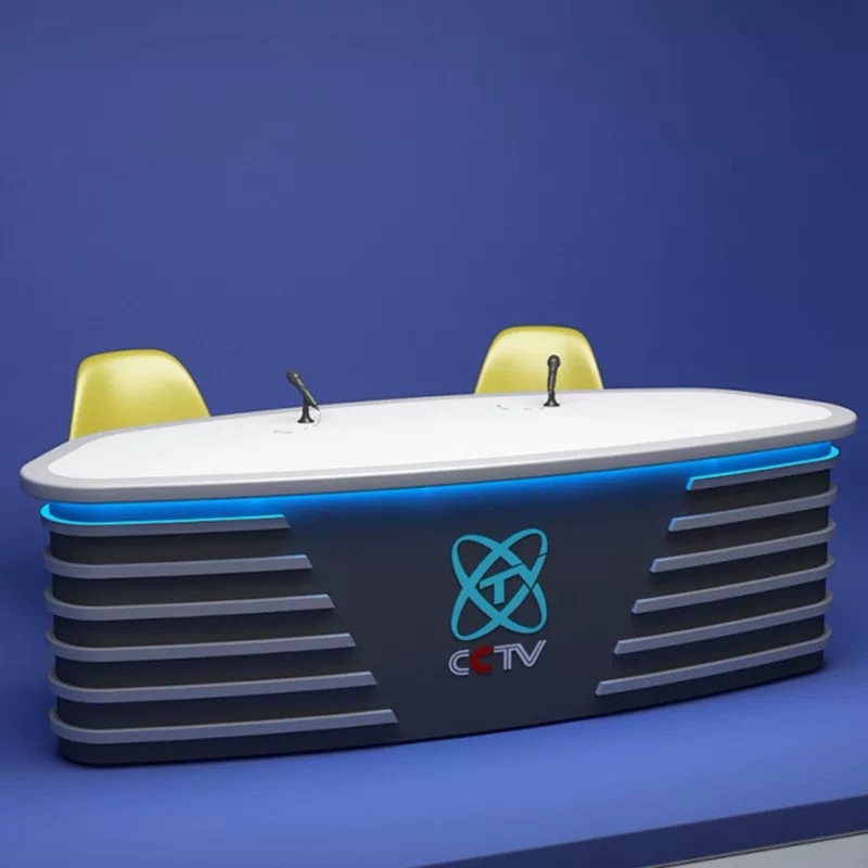 UNCUCO TV Video Studio Table For Live Broadcast News: Double Announcer Arc Shape Desk